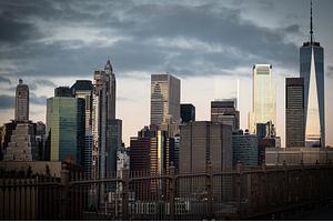 Sunrise photo of the Manhattan skyline taken from Brooklyn Bridge